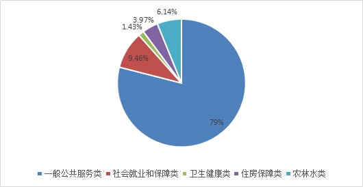 2019年一般公共预算财政拨款支出999.29元,主要用于以下方面:一般公共服务(类)支出789.42万元,占79%;社会保障和就业(类)支出94.55万元,占9.46%;卫生健康支出14.25万元,占1.43%;住房保障支出39.70万元,占3.97%;农林水(类)支出61.37万元,占6.14%。