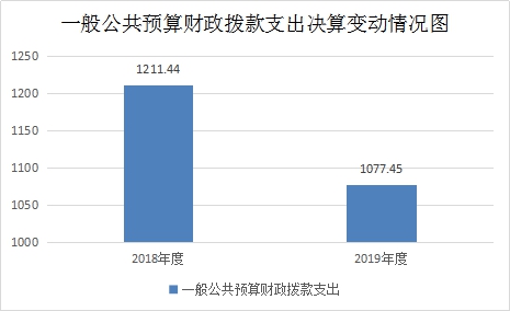 2019年一般公共预算财政拨款支出1077.45万元,占本年支出合计的74.56%。与2018年相比,一般公共预算财政拨款减少134万元,下降11.06%。主要变动原因是加强资金管理,严格控制经费支出。