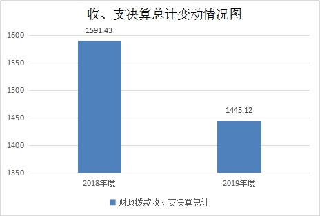 2019年度收、支总计1445.12万元。与2018年相比,收、支总计减少146.31万元,下降9.2%。主要变动原因是加强资金管理,严格控制经费支出。