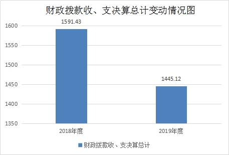 2019年财政拨款收、支总计1445.12万元。与2018年相比,收、支总计减少146.31万元,下降9.2%。主要变动原因是加强资金管理,严格控制经费支出。