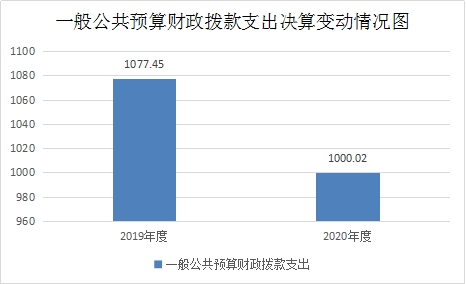 2020年一般公共预算财政拨款支出1000.02万元,占本年支出合计的100%。与2019年相比,一般公共预算财政拨款减少77.42万元,下降7.19%。主要变动原因是加强资金管理,严格控制经费支出。