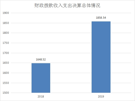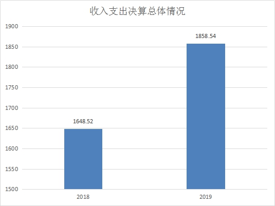2019年度收、支总计1858.54万元。与2018年相比,收、支总计各增加210.02万元、增长11.30%。主要变动原因是2019年慰问金收支调整为一般财政公共预算以及脱贫攻坚经费增加。