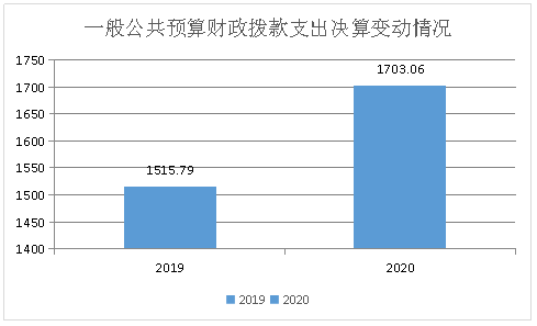 2020年一般公共预算支出决算数为1703.06,完成预算96.5%。其中: