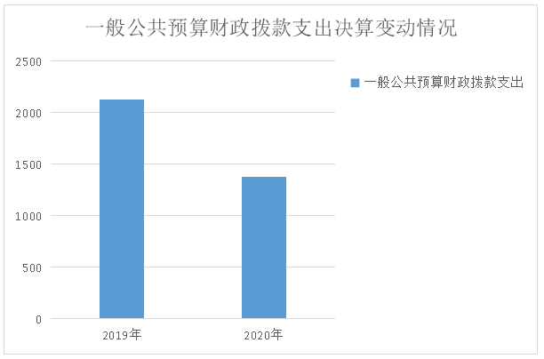 2020年一般公共预算财政拨款支出1372.72万元,占本年支出合计的100%。与2019年相比,一般公共预算财政拨款减少754.05万元,下降35.46%。主要变动原因是2019年机构改革,城乡居民医疗保险代缴任务于2020年完全移交峨边彝族自治县医疗保障局,导致城乡居民医疗保险代缴项目移交县峨边彝族自治县医疗保障局执行。