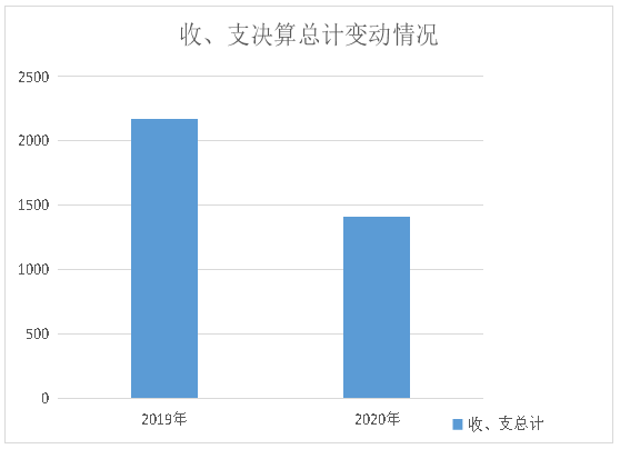 2020年度收、支总计1414.30万元。与2019年相比,收、支总计各减少753.74万元,下降34.78%。主要变动原因是2019年机构改革,城乡居民医疗保险代缴任务于2020年完全移交峨边彝族自治县医疗保障局,导致城乡居民医疗保险代缴项目移交县峨边彝族自治县医疗保障局执行。