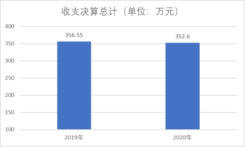 2020年度收、支总计352.6万元。与2019年相比,收、支总计减少3.95万元,下降1.11%。与2019年相比略微下降,主要变动原因是部门厉行节约。