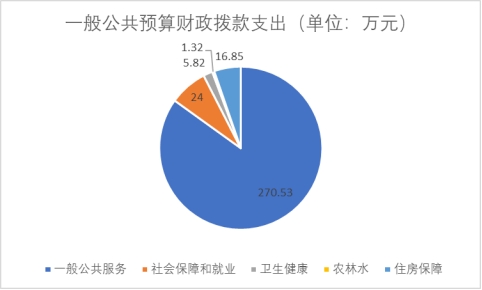 2020年一般公共预算财政拨款支出318.53万元,主要用于以下方面:一般公共服务(类)支出270.53万元,占84.93%;社会保障和就业(类)支出24.01万元,占7.53%;卫生健康支出5.82万元,占1.83%;住房保障支出16.85万元,占5.29%;农林水支出1.32万元,占0.42%。