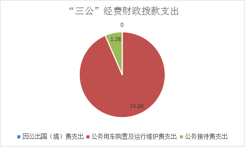 2019年“三公”经费财政拨款支出决算中,因公出国(境)费支出决算0万元,占0%;公务用车购置及运行维护费支出决算19.88万元,占93.51%;公务接待费支出决算1.38万元,占6.49%。具体情况如下: