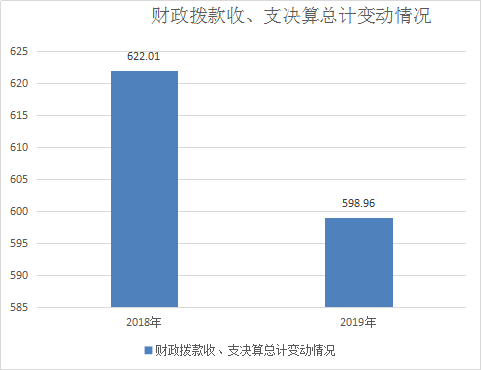 2019年度财政拨款收、支总计598.96万元。与2018年相比,财政拨款收、支总计各减少23.05万元,减少3.70%。。主要变动原因是厉行节约。