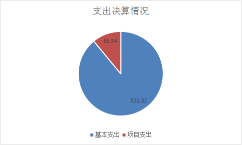 2019年本年支出合计596.85万元,其中:基本支出531.31万元;项目支出65.54万元;年末结转结余2.11万元。