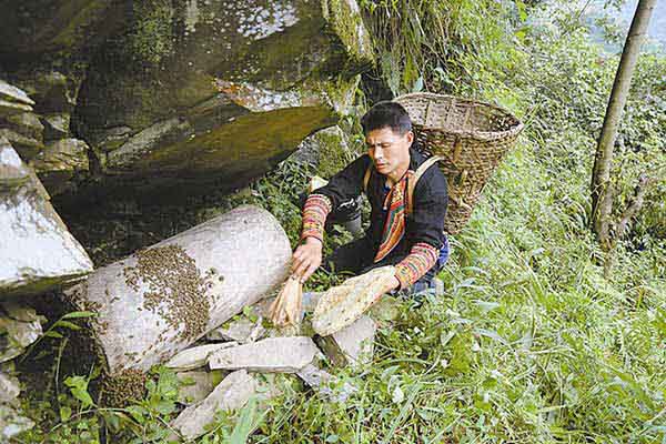 峨边植物种类繁多,蜜粉源植物丰富。野山蜂,常年定地高山深处,采集的是奇花异草。蜜蜂酿造的蜂蜜,细腻如绸,味道浓厚香醇,口感绵润,含有多种能被人体直接吸收的微量元素,且有丰富的营养价值和保健治病功效。