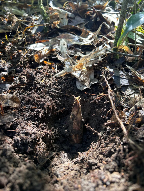 家住杨河乡牟加村的村民欧其务牛一大早便乘坐小货车到达灰山产笋区,这里的竹笋是全县最先出土的,当年国宴上的“梦笋”也采自这里。竹笋还未冒出土地,他便熟练地清理出竹笋上的表土。说起“梦笋”名字由来,欧其务牛有着自己的解释,“梦笋是说竹笋还在土地里睡觉就被挖出来了,这时候的笋子非常清甜,拿来凉拌和炖土鸡特别好吃,刚出市的时候能卖10多元一斤。等到竹笋大面积出市了,这片山非常热闹,有打笋的人,有收笋的人,我们村村民靠这季笋,人均增收就能超过2万元”。