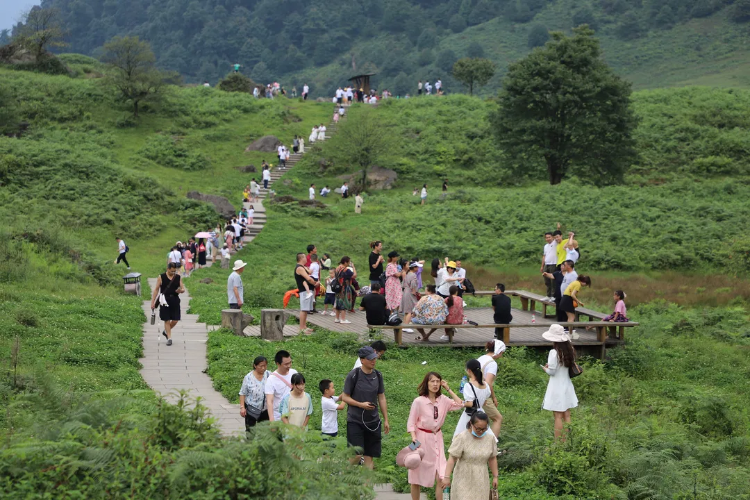 “这里空气清新,风景优美,虽然游客比较多,但排队坐车到每个景点都很方便,也不拥挤,值得一来。”来自峨眉的张女士对景区赞叹不已。