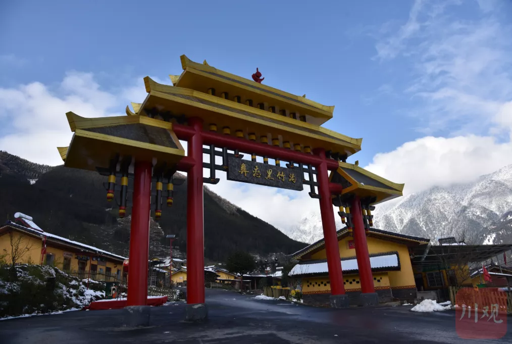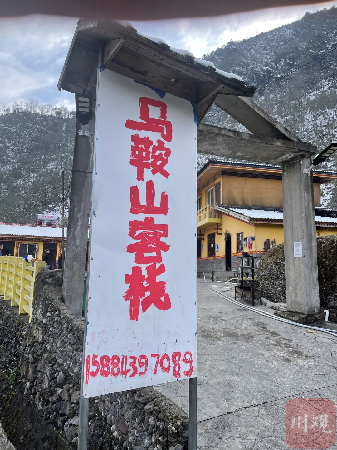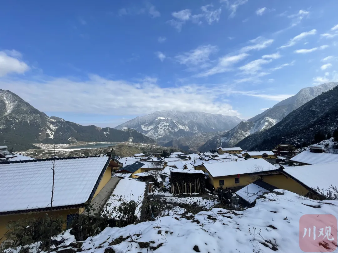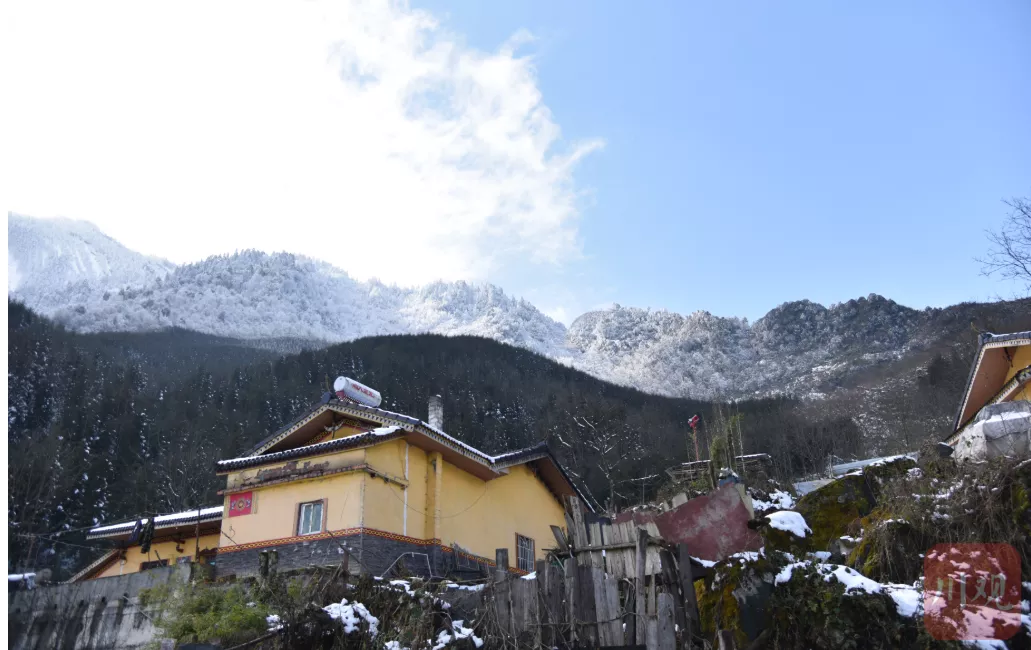 蓝天、雪山、雾凇、冰挂。山上,黑竹沟的积雪堆得厚;山下,古井村待客的火塘烧得旺。