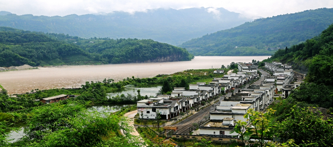 “青山绿水,美丽渔舟,铜河弯弯不歇脚,铜河将将好……”初夏时节,走进四川省乐山市峨边彝族自治县五渡镇铜河村,歌声悠扬婉转,山水环绕,绿树成荫,集中安置区井然有序,青瓦白墙、缭缭水雾和大渡河上的轻舟形成了一卷生机盎然的乡村水墨画。