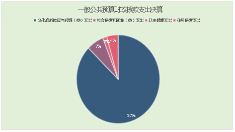 2020年一般公共预算财政拨款支出255.95万元,主要用于以下方面:文化旅游体育与传媒(类)支出223.64万元,占87.38%;社会保障和就业(类)支出16.95万元,占6.62%;卫生健康支出4.07万元,占1.59%;住房保障支出11.29万元,占4.41%。