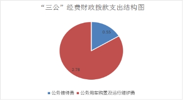 2020年“三公”经费财政拨款支决算中,因公出国(境)经费0万元,占0%;公务接待费支出决算0.55万元,占16.52%;公务用车购置及运行维护费支出决算2.78万元,占83.48%。具体情况如下:
