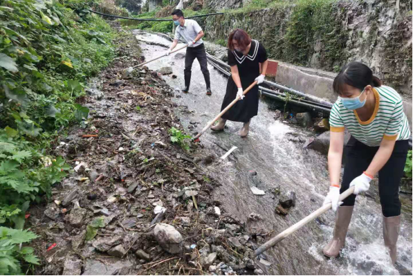 图:党员干部带头清理沟渠