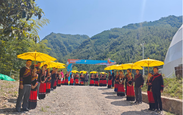 下午,身着绚丽民族服饰的彝族青年们在露营地前列队等候。他们脸上洋溢着淳朴而热情的笑容,为游客们献上醇香美酒,让每一位到来的朋友瞬间感受到了彝家人的真诚与好客,现场氛围热烈非凡。