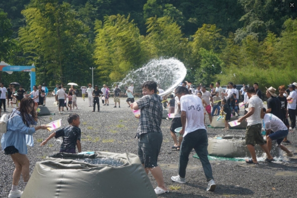 尔后,泼水大战激情开场。在庄严的“毕摩圣水”祈福仪式后,游客们尽情体验源自彝族婚嫁风俗的独特泼水文化。清凉的水花漫天飞舞,驱散了夏日的酷热。小朋友们也加入了这场热闹的派对,拿起水枪,水盆,在泡泡池里尽情撒欢、现场的笑声、欢呼声交织成一片欢乐的海洋。