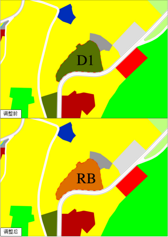项目地块调整前后用地情况对比图