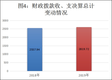 2019年财政拨款收、支总计2819.72万元。与2018年相比,财政拨款收、支总计各增加261.88万元,增长10.23%。主要变动原因:一是我县举全县之力开展脱贫攻坚工作,政府办现有的公务用车持有量不能满足县级各部门为开展脱贫攻坚工作的用车量,只能大量租用运输公司的出租车,造成租车费用成倍的增加;二是在2018年实行公务用车集中管理后,收回的公务用车很多已超年限服务,已不能保障用车安全,而且维修费用也高,所以报上级部门报废更新了一批新的公务用车。所以,2018年我单位的收入和支出较上年都有所增加。三是2019年是全县脱贫攻坚工作的摘帽年,各项工作任务很重,我办加大了脱贫攻坚工作的经费投入。所以,2019年我收入和支出较上年都有所增加。