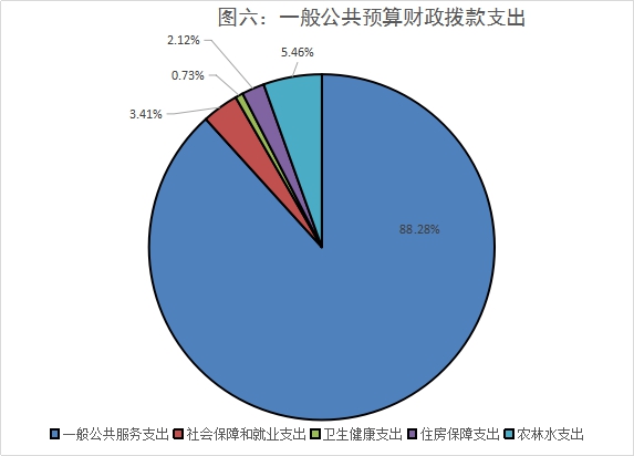 2019年一般公共预算财政拨款支出2244.28万元,主要用于以下方面:一般公共服务(类)支出1981.19万元,占88.28%;社会保障和就业(类)支出76.43万元,占3.41%;医疗卫生支出16.42万元,占0.73%;农林水支出122.64万元,占5.46%;住房保障支出47.60万元,占2.12%。