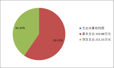 2019年本年支出合计522.43万元,其中:基本支出310.88万元,占59.51%;项目支出211.55万元,占40.49%;上缴上级支出0万元,占0%;经营支出0万元,占0%;对附属单位补助支出0万元,占0%。