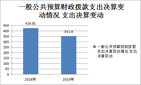 2019年一般公共预算财政拨款支出351.8万元,占本年支出合计的67.34%。与2018年相比,一般公共预算财政拨款减少75.01万元,下降17.58%。主要变动原因是减少项目支出经费支出。