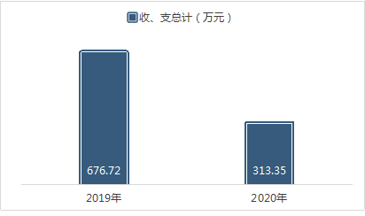 2020年度收、支总计313.35 万元。与2019年相比,收、支总计减少363.35万元,下降53.69%。主要变动原因是19个乡镇便民中心建设项目工程支付款减少。