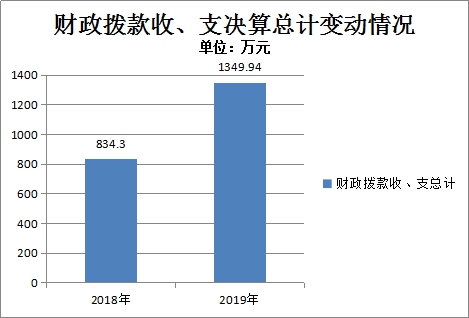 2019年财政拨款收、支总计1349.94万元。与2018年相比,财政拨款收、支总计各增加515.93万元,增长61.83%。主要变动原因是本年度一般公共服务、项目等收支总计增加。