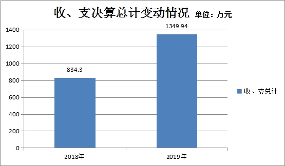 2019年度收、支总计1349.94万元。与2018年相比,收、支总计各增加515.93万元,增长61.81%。主要变动原因是机构合并。
