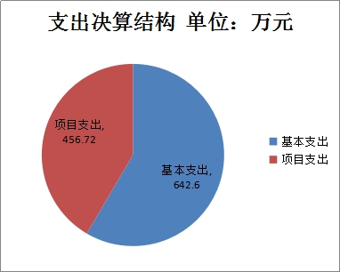2019年本年支出合计1099.32元,其中:基本支出642.60万元,占58.45%;项目支出456.72万元,占41.55%;上缴上级支出0元,占0%;经营支出0万元,占0%;对附属单位补助支出0万元,占0%。
