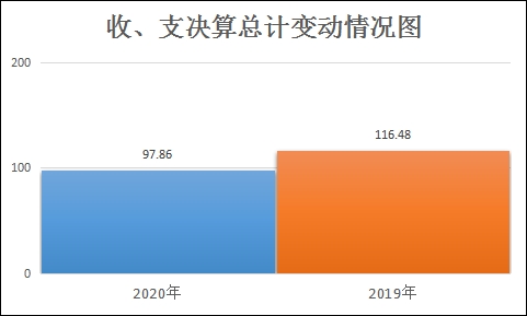 2020年度收、支总计97.86万元。与2019年相比,收、支总计各减少18.62万元,下降15.99%。主要变动原因是财政拨款收入减少,事业收入、事业支出减少。