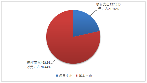 三、 支出决算情况说明 2019年本年支出合计591.41万元,其中:基本支出463.91万元,占78.44%;项目支出127.5万元,占21.56%;上缴上级支出00万元,占0%;经营支出0万元,占0%;对附属单位补助支出0万元,占0%。