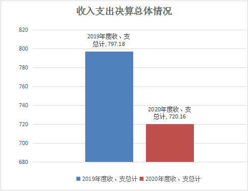 2020年度收、支总计720.16万元。与2019年相比,收、支总计各减少77.02万元,减少9.66%。主要变动原因是2019年政府加大对教育的投入,为学校配备教学仪器设备、音体美器材、修建了塑胶操场。