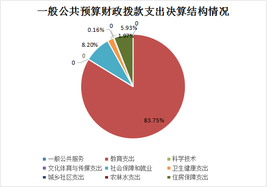 2020年一般公共预算财政拨款支出658.85万元,主要用于以下方面:教育支出(类)551.78万元,占83.75%;社会保障和就业(类)支出53.99万元,占8.20%;卫生健康支出12.97万元,占1.97%;住房保障支出39.08万元,占5.93%;农林水支出(类)1.03万元,占0.16%;