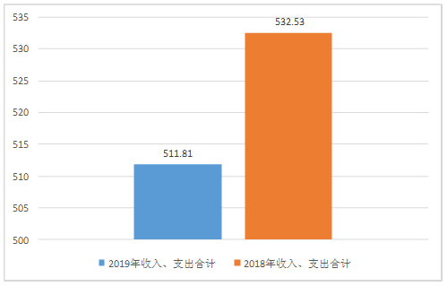 一、 收入支出决算总体情况说明 2019年度收、支总计511.81万元。与2018年相比,收、支总计各减少20.72万元,下降3.89%。主要变动原因是加强内部管理,树立节约意识。 二、收入决算情况说明 2019年本年收入合计410.3万元,其中:一般公共预算财政拨款收入399.94万元,占97.47%;政府性基金预算财政拨款收入0万元,占0%;国有资本经营预算财政拨款收入0万元,占0%;事业收入10.39万元,占2.53%,经营收入0万元,占0%;附属单位上缴收入0万元,占0%;其他收入0万元,占0%。