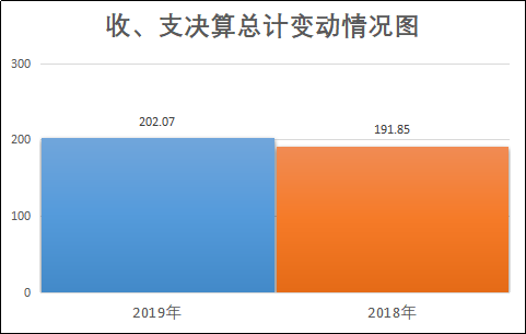 2019年度收、支总计202.07万元。与2018年相比,收、支总计各增加10.22万元,增长5.33%。主要变动原因是2019年业务量增加,人员增加,财政拨款收入,事业收入,事业支出较2018年有所增长。