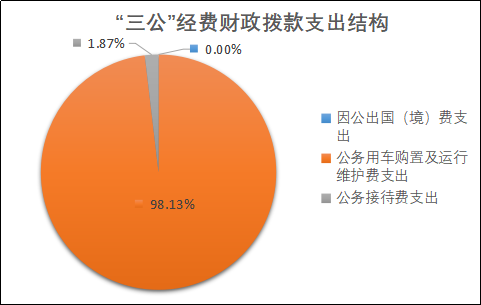 2019年“三公”经费财政拨款支出决算中,因公出国(境)费支出决算0万元,占0%;公务用车购置及运行维护费支出决算2.10万元,占98.13%;公务接待费支出决算0.04万元,占1.83%。具体情况如下: