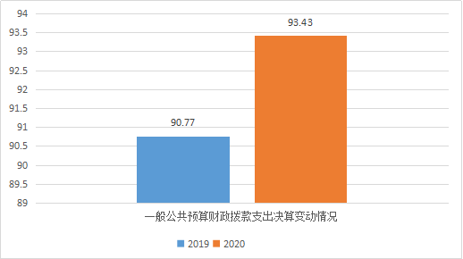 2020年一般公共预算支出决算数为93.43,完成预算99.97%。其中: