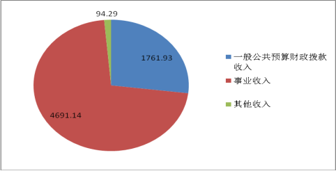 2019年本年收入合计6547.36万元,其中:一般公共预算财政拨款收入1761.93万元,占26.91%;政府性基金预算财政拨款收入0万元,占0%;上级补助收入0万元,占0%;事业收入4691.14万元,占71.65%;经营收入0万元,占0%;附属单位上缴收入0万元,占0%;其他收入94.29万元,占1.44%。