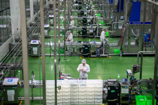 2025年4月17日,在内蒙古呼和浩特市土默特左旗,工人在伊利现代智慧健康谷全球智能制造产业园灌装车间内工作。