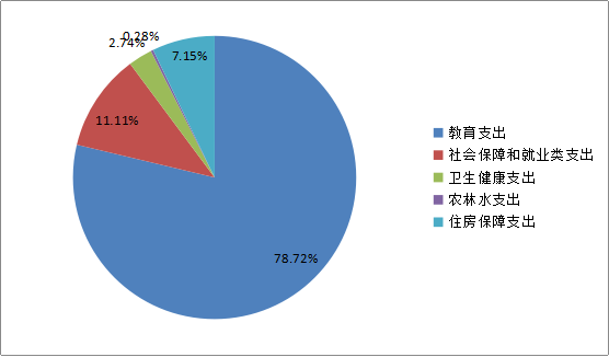 2020年一般公共预算财政拨款支出1668.21万元,主要用于以下方面:教育支出(类)1313.17万元,占78.72%;社会保障和就业(类)支出185.32万元,占11.11%;卫生健康支出45.69万元,占2.74%;农林水支出4.75万元,占0.28%;住房保障支出119.28万元,占7.15%。