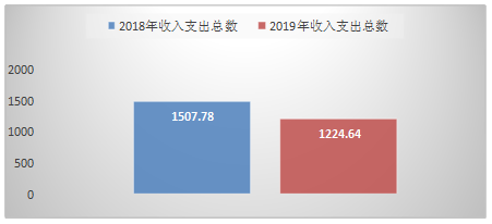 一、收入支出决算总体情况说明 2019年度收、支总计1224.64万元。与2018年相比,收、支总计各减少283.14万元,下降18.78%。主要变动原因是项目减少。