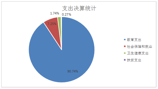(二)一般公共预算财政拨款支出决算结构情况 2019年一般公共预算财政拨款支出1025.22万元,主要用于以下方面:教育支出(类)930.28万元,占90.74%,社会保障和就业(类)支出74.36万元,占7.25%;卫生健康支出17.78万元,占1.74%;其他扶贫支出2.81万元。占0.27%