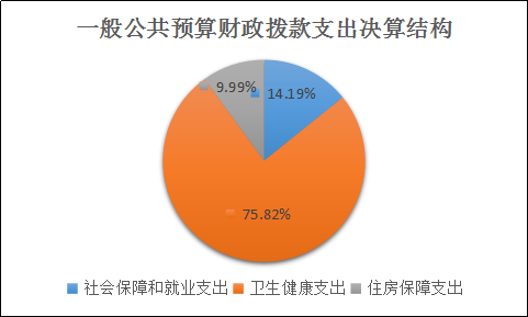 2019年一般公共预算财政拨款支出200.17万元,主要用于以下方面:一般公共服务(类)支出0万元,占0%;教育支出(类)0万元,占0%;科学技术(类)支出0万元,占0%;文化旅游体育与传媒(类)支出0万元,占0%;社会保障和就业(类)支出28.40万元,占14.19%;卫生健康支出151.77万元,占75.82%;住房保障支出20万元,占9.99%。