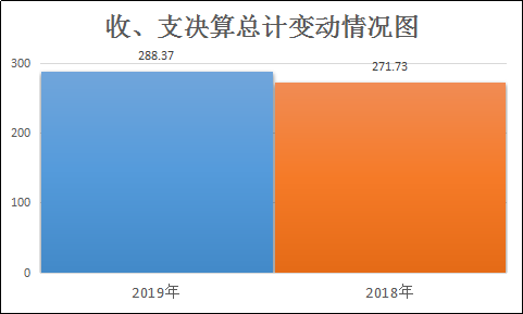 2019年度收、支总计288.37万元。与2018年相比,收、支总计各增加16.64万元,增长6.12%。主要变动原因是2019年人员增加,财政拨款收入、事业支出较2018年有所增长。