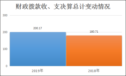 2019年财政拨款收、支总计200.17万元。与2018年相比,财政拨款收、支总计各增加19.46万元,增长10.77%。主要变动原因是2019年人员增加,财政拨款收入、事业支出较2018年有所增长。