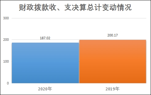 2020年财政拨款收、支总计187.02万元。与2019年相比,财政拨款收、支总计各减少13.15万元,下降6.57%。主要变动原因是2020年业务量减少,财政拨款调减。